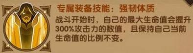 战斗开始时,自己的最大生命值会提升300%攻击力的数值,且保持自己当前生命值的比例不变。