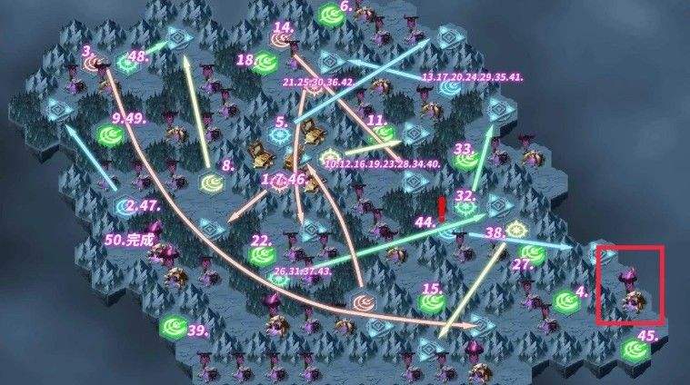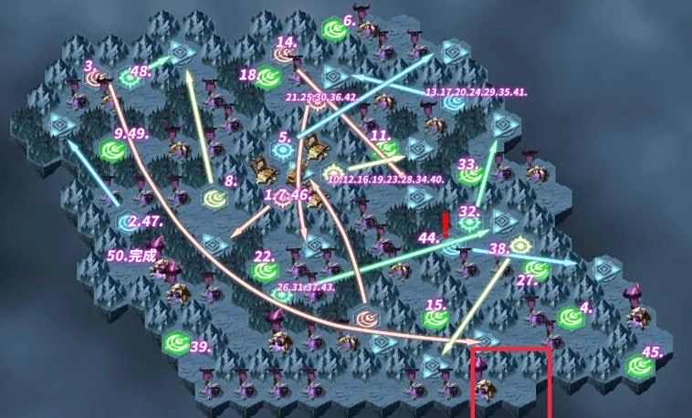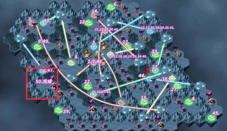 大部分都建议你女妖180了再去打,我那阵沉迷于极限推图,有经验也不用,180红女妖带着168红光盾,141工具人们出发了,基本上能干掉两个宝箱和右下角蛮族首领以外的所有山头。