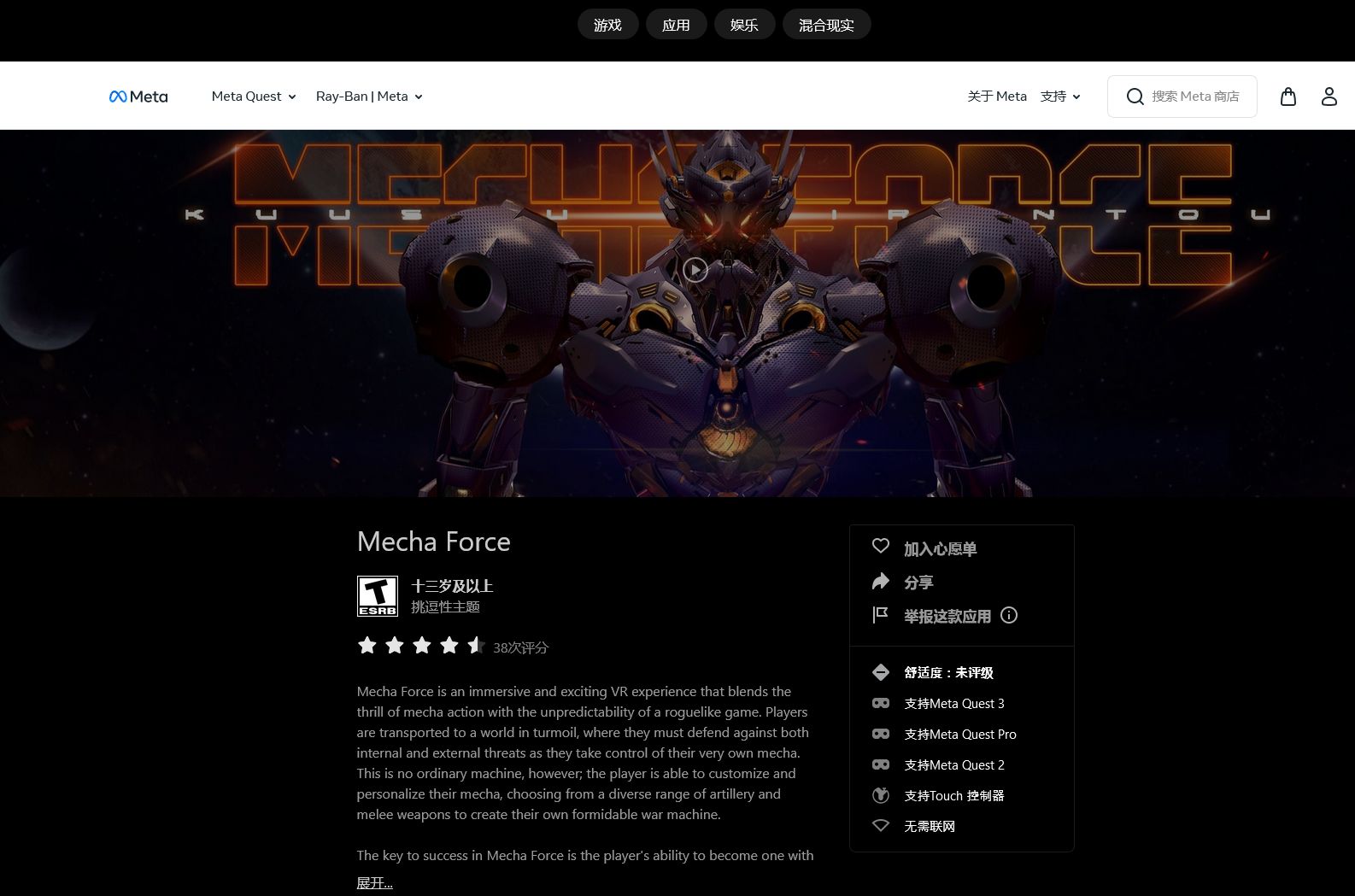 目前游戏暂未开放 Steam 商店页面,但适配于 Quest 的 Meta 商店页面已经上线。